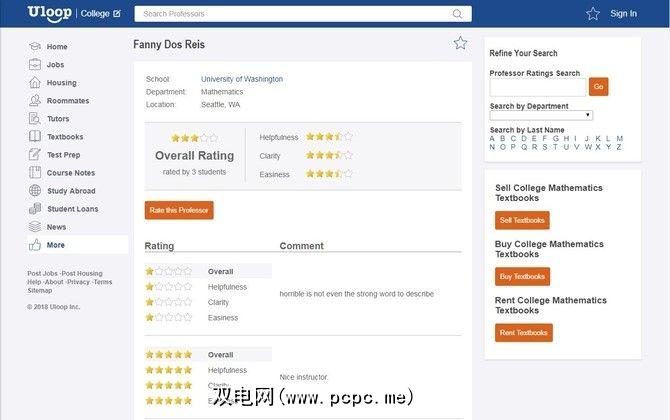 Uloop是一个完全由全国大学生提供支持的网站。在美国,几乎所有学校的学生都可以在该位置对老师进行评分,以帮助其他学生避免被不良教授困住。