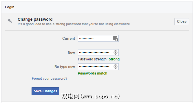 在设置>安全和登录下,向下滚动至登录,然后单击更改密码。输入您当前的密码,设置一个强度较高的新密码(可能使用LastPass之类的密码管理器),然后单击保存更改。