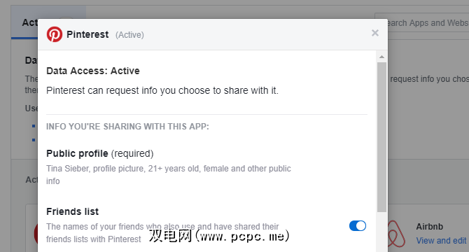 或者,单击查看并编辑 >链接并更改应用程序的权限,其中包括应用程序可见性,访问您的个人信息以及可以采取的措施等选项。