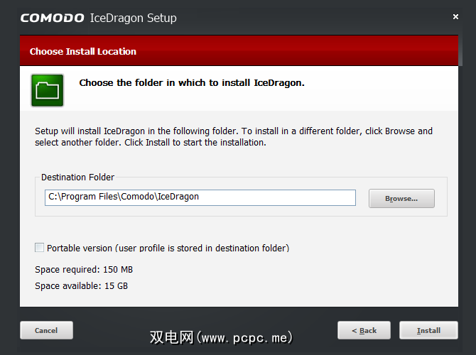 在安装方面,Comodo采取了相同的措施作为维瓦尔第。您需要下载该应用的常规版本,然后在设置过程中选中标记为便携式版本(用户配置文件存储在目标文件夹中)的框。