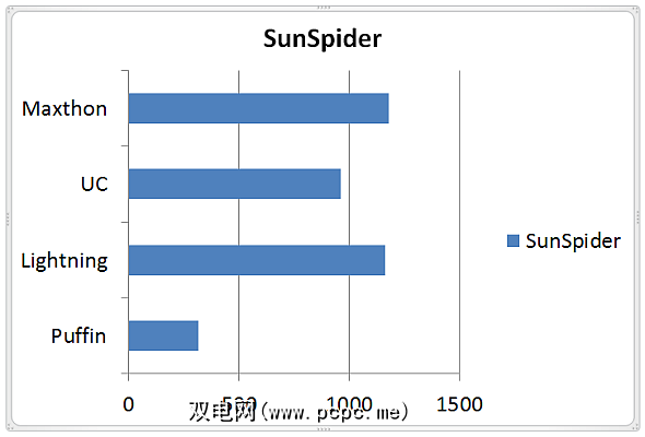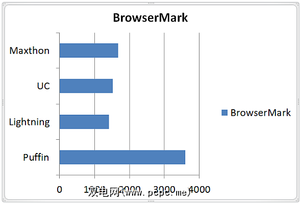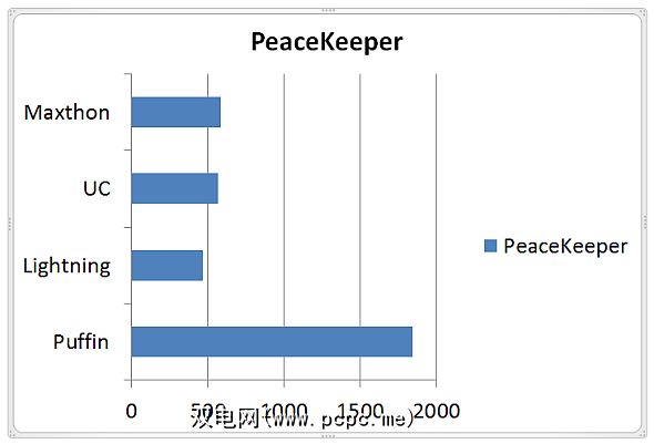 Puffin完全摧毁了PeaceKeeper的竞争。还差得远但是,值得注意的是,Maxthon和UC在闪电方面均遥遥领先。它看起来比结果显示的还要多得多,主要是因为Puffin的表现如此出色。