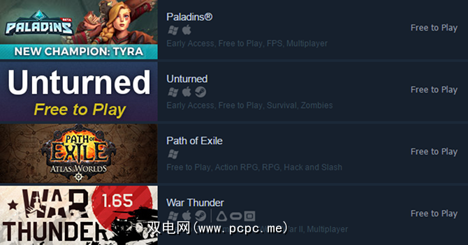 在撰写本文时,Steam的“免费游戏"部分只有3200个游戏。仅花费您一个小时的时间,就仍然可以享受133天的娱乐时间,而且其中许多游戏都很棒,包括Dota 2,Paladins,Brawhalla,Duelyst,Exile Path和Warframe。
