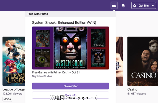 在这种情况下,该权益Twitch Prime的产品是每月免费下载商业游戏。