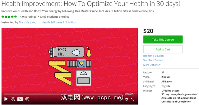 本课程内容非常广泛,涉及各种途径,可以通过良好的营养改善健康状况。总共有26堂课,大约需要2个小时才能完成,因此这并不是一个耗时的工作。旨在帮助您在30天内改变饮食习惯(和健康状况)。如果您稳定吃比萨饼和汽水,那么在完成本课程后,您可能需要进行一些认真的调整。