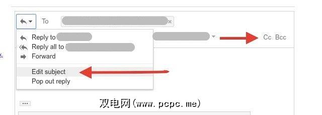 1)更改主题行:默认情况下,主题行不会出现在“回复"对话框中。要显示它,请单击“收件人"字段左侧的小箭头,然后在出现的下拉菜单中单击“ 编辑主题" 链接。