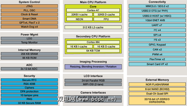 i.MX7还引入了一种称为异构多核处理体系结构(HMPA),它允许两个处理器体系结构同时运行。与较旧的处理器不同,i.MX7使用两个处理核心:一个核心具有Cortex A7架构,而另一个则具有更节能的Cortex M4架构。