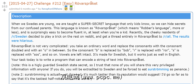 我很大项目Euler和Reddit的Daily Programmer Subreddit的爱好者,这些问题具有编程难题。我是后者的忠实拥护者,因为我们鼓励您共享代码并从其他开发人员那里获得反馈。