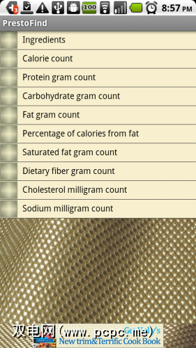 但是,我最喜欢的选项肯定是 PrestoFind 。使用PrestoFind,您可以根据对您重要的特定类别将配方从数据库中拔出。例如,来自脂肪的卡路里百分比将显示标有来自脂肪的卡路里百分比的食谱。 毫克毫克计数将显示食谱中有多少盐。