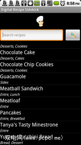 Android上最创新的食谱应用程序之一肯定是Digital Recipe Sidekick。与“移动高峰时间"一样,如果您真的时间紧迫,此应用程序可以快速,随机地选择食谱供您选择。或者,您也可以使用搜索引擎在配方数据库中进行筛选。