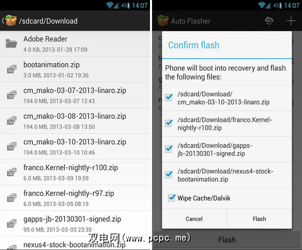 对于某些更轻巧,更集中的东西,Auto Flasher可能就是您想要的。它使您可以选择手机上的多个ROM并一次将它们全部刷新。通过根据文件名模式识别ROM,可以使整个过程变得更加容易,因此您不必逐个目录地搜索手机即可找到所需的内容。
