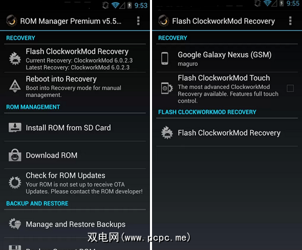 为了使ROM Manager正常运行,必须将设备植根。 ROM管理器还需要ClockworkMod恢复。如果您没有它,或者您具有过时的版本,则ROM Manager会检测到它并询问您是否要使其更新。根据您的手机型号,它可以处理其他所有事情,但是如果您的型号不兼容,您将不走运。