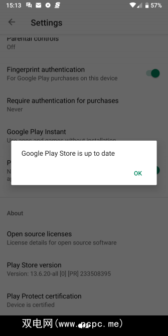完成此操作后,您可以通过两种方式将Play商店应用更新为最新版本。一种是简单地打开Play商店,然后从左侧的滑出菜单中选择设置。在这里,向下滚动并点击 Play商店版本条目以检查更新。