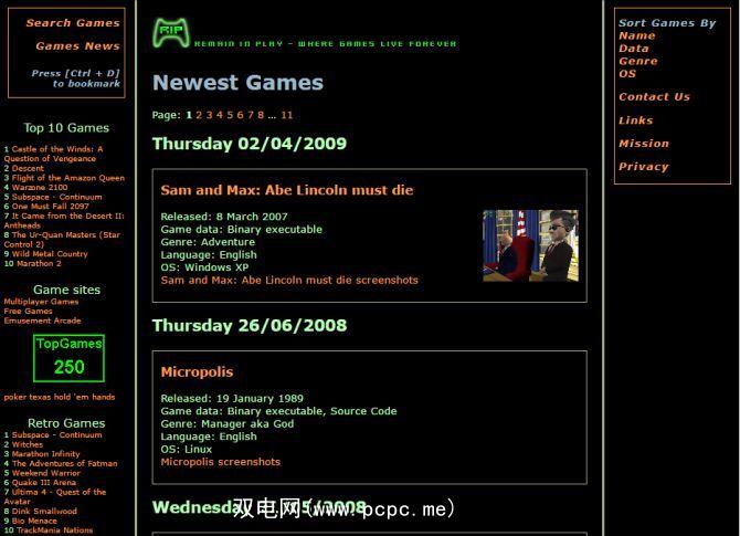 保持游戏状态的另一个站点是(也包括非DOS)游戏。该网站拒绝接受一开始就免费的放弃软件和游戏。他们只专注于故意作为免费软件发布的商业游戏。
