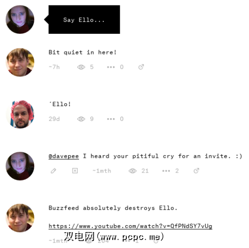 Ello是新手。到处都是时髦人士,决心永远不向您做广告。一切都设计得尽可能简单–这就是它的失败。您可以查看朋友在说什么,也可以查看“噪音"。从理论上讲听起来不错,但是您会得到什么呢?好吧,重新发布。每次我查看“噪声"时,都会看到同一条帖子被转发了好几次。我只滚动了大约五分钟,并且发誓只看到五个不同的帖子。