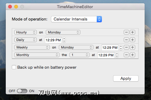 Time Machine默认情况下每隔一小时将Mac连接到备份驱动器就备份一次。如果您希望每两个小时甚至每六个小时一次,则可以使用Time Machine Editor来做到这一点。