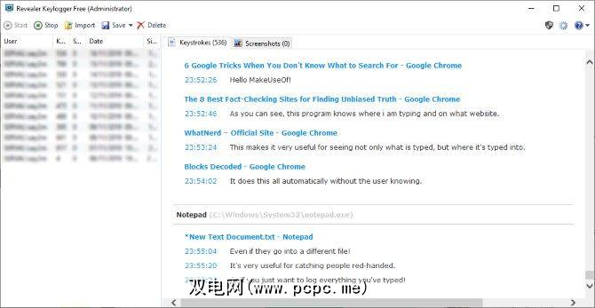 如果您想使用免费的解决方案,Revealer Keylogger是一个不错的选择。这个方便的实用程序记录击键的发生情况。它还会记录按键的确切时间以及键入字母的应用程序。