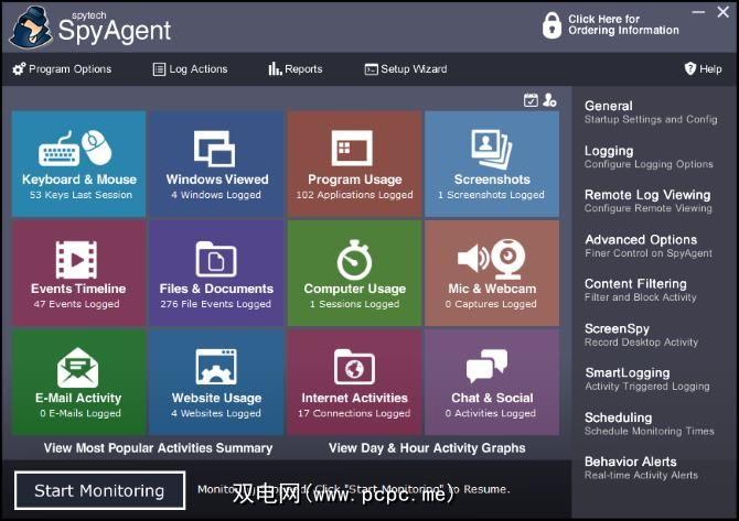 Spytech提供了许多可用的计算机跟踪软件,但是他们的SpyAgent PC活动跟踪器尤其令人印象深刻。它可以跟踪计算机活动,例如按键,单击,使用的软件,浏览历史记录等。
