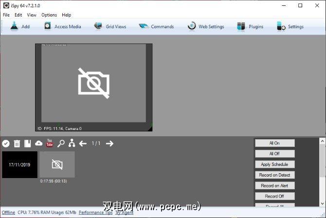 首次安装并运行iSpy时,它会要求您添加摄像机。完成后,它将显示您的供稿,并在其下方显示一个绿色栏。绿条看起来像麦克风的声音水平,但不要上当。该条实际上是iSpy检测到的运动量。 iSpy检测到的移动越多,绿色条形填充的内容就越多。如果该条超过红色箭头,它将开始记录。