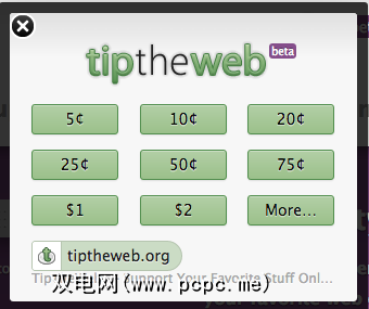 Flattr会从捐赠的所有资金中分得一部分,但竞争对手TipTheWeb却不会。取而代之的是,他们自己通过小费来资助运营。没有按月付费的订阅,用户可以自由选择要付的小费,从0.05美元到100美元不等。