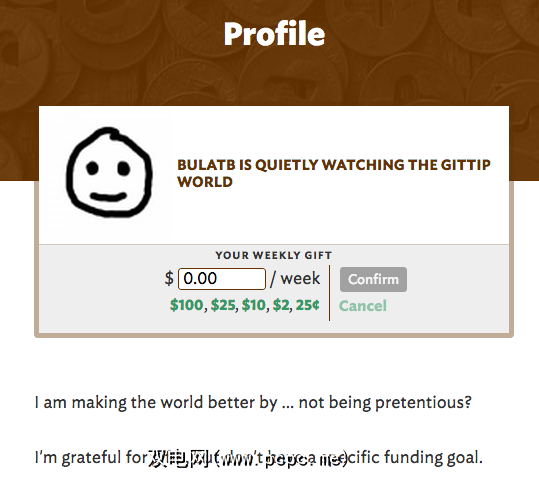 另一项服务是Gittip。尽管有这个名称,它与代码托管服务Github或Git版本控制系统无关,也与软件开发无关。