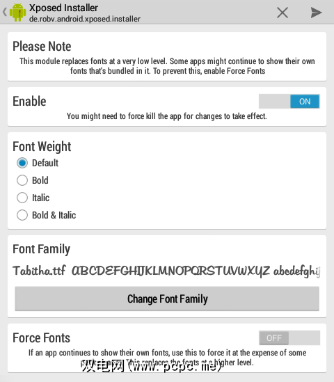 PerAppfonts的一个小缺点是它仅提供8种字体:Monospace,Serif,Sans,Roboto Condensed,Storopia,Rosemary,Roboto Slab,以及当前使用的默认系统字体。幸运的是,您可以通过将更多字体上传到手机的SD卡中并在PerAppFonts设置中进行选择来添加更多字体。