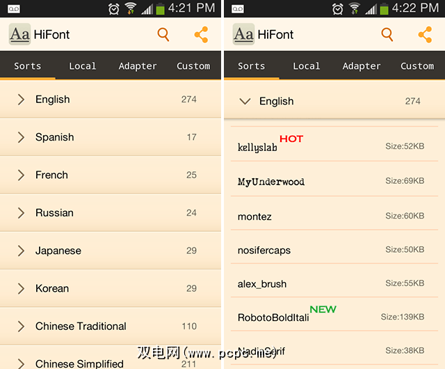 字体安装程序是Play商店上的另一个免费应用程序,可让您从数百种字体的图库中进行选择。可以从手机的SD卡直接安装自定义字体,也可以共享字体。这是ROM Toolbox Pro [不再可用]中可用的应用程序之一,应该可以说明Font Installer的质量。不管您使用哪种设备,Font Installer都必须将其植根。