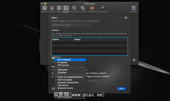 “安眠"也支持触发器,尽管它们不如苯丙胺灵活或复杂。您可以根据多个参数(例如Wi-Fi网络,外部显示器,交流电源等)激活该应用。