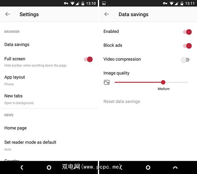Opera Turbo可以将您的网页内容压缩多达50%。如果您的数据计划非常严格,则可以改用Opera Mini。尽管您可能会在某些站点中失去某些功能,但是这会将网页减小到原始大小的10%。