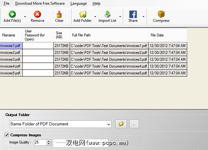 此免费软件应用程序使您可以一次压缩单个或多个PDF。即使PDF受密码保护,也只需单击几下鼠标就可以压缩PDF的整个文件夹。