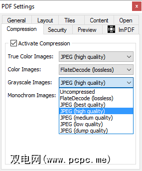 此外,您可以从五个压缩级别中进行选择,具体取决于您要使用的方式文件:
