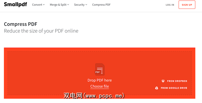 您甚至不需要帐户即可使用SmallPDF。只需转到该站点,添加文件,然后单击压缩PDF 。然后,您可以将PDF拖到页面上,在硬盘上找到文件,或者从Google Drive或Dropbox导入PDF。该文件将被自动压缩。只需点击下载按钮,即可将新文件保存到硬盘中。