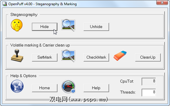 下载OpenPuff之后,启动它并单击“隐藏"按钮开始将数据隐藏在文件中。如果您具有所需的信息,则您(或其他人)可以使用“取消隐藏"按钮从文件中提取隐藏的数据。这样一来,您就可以与某人共享媒体文件,或者将自己的秘密数据存储在一个没人愿意看的地方。