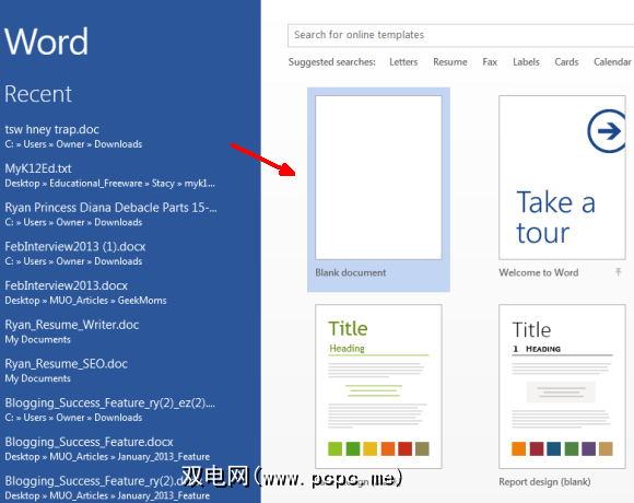当我第一次开始使用Office 2013时,确实令人震惊。首先,所有模板都有一个巨大的初始页面。我的第一个念头是“什么……?"经过一会儿的寻找,我找到了想要的空白文件。