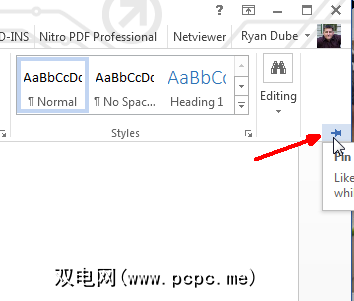 第二,功能区栏。我真的不喜欢丝带条消失在我身上。我希望它可以在可见的时刻显示出来并可以访问。您可以通过移至功能区栏的右下角并按小“ pin"图标,使其保持固定状态。