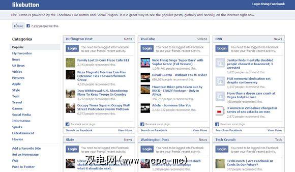 赞按钮是人们通过Facebook赞按钮共享的最喜欢的网页的集合。从这个意义上讲,它是唯一一个关注Facebook的应用程序,可让您了解社交网络上正在发生的事情。该网站井井有条,您可以看到链接实时更新。查看左侧的类别。正如该网站所说,您可以将其用作一个整洁的主页,以了解早晨Facebook上第一件事的趋势。