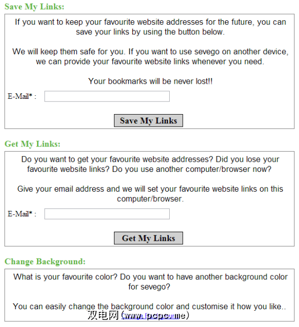 Sevego还具有一个设置页面。您可以保存自定义的Sevego页面,也可以通过将链接发送给您来保存链接列表。您还可以将Sevego页面的背景更改为所需的任何颜色。