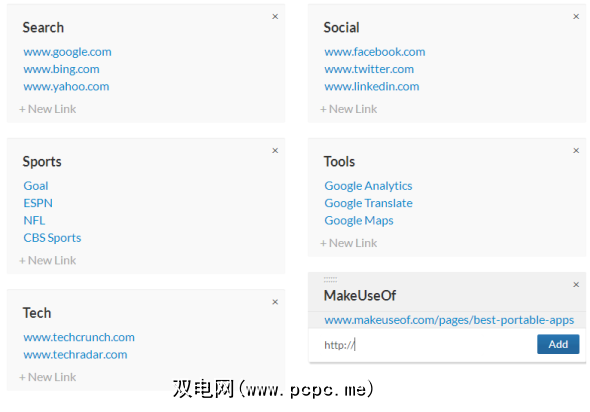Tilerun是快速拨号上独特而令人耳目一新的功能。该网站要求您首先创建一个帐户以使用其服务,以便能够保存多个不同的快速拨号主页并从与您的用户名相对应的永久URL访问它们。