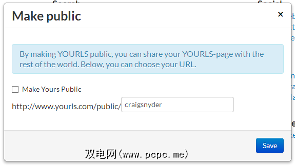 您还可以选择创建Yourls页面公开并为其分配自定义网址。这样,您便可以与对相同内容感兴趣的其他任何人共享快速拨号主页。