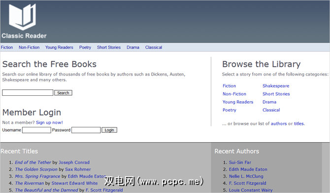 经典阅读器位于Planet eBook和ManyBooks之间。它提供了多种小说,非小说,古典,戏剧和年轻读者选择。您还可以浏览诗歌和短篇小说部分,以进行一些简单的阅读。