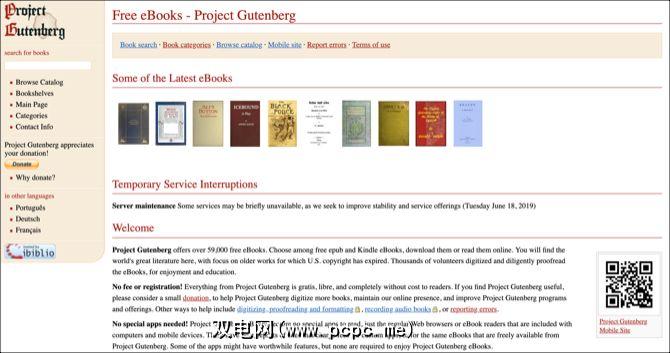 拥有近6万本免费电子书,您一定会在古腾堡计划网站上找到不错的阅读书。您可以搜索特定的书名,查看最近添加的书籍或查看前100名电子书。如果要浏览脱机选项,例如,如果互联网连接速度慢,该站点将提供针对这些类型的书籍的目录。