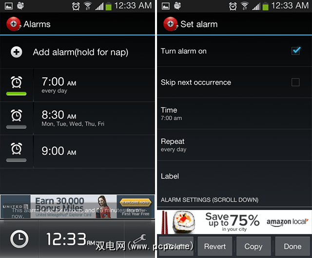 当然,您可以选择每个警报要使用的唤醒任务。免费版本的“我无法唤醒"!横幅广告支持。通过以2.99美元的价格升级到付费版本,您可以摆脱它们。