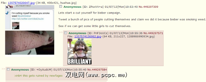 2013年,TMZ在一次聚会上使用大麻抓到了贾斯汀·比伯。可以预见的是,随之而来的是人造媒体愤怒的泛滥。但是,由于有了4chan,事情很快就变了黑。