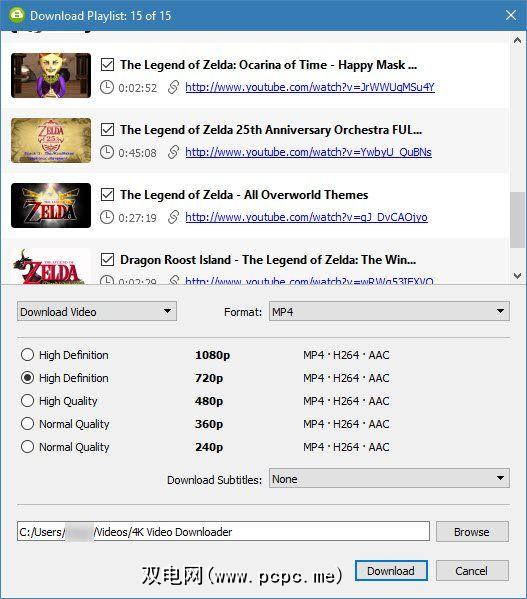 上面的方法非常适合下载单个视频,但是4K Video Downloader具有更多功能提供。如果您粘贴YouTube播放列表链接,它将自动解析所有视频,并让您一次下载所有视频。这样可以节省大量时间,因为您不必为每个视频选择质量设置。