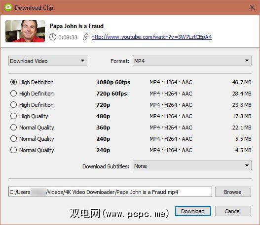 4K Video Downloader使得在以下位置轻松下载视频成为可能:多种格式和文件类型。最简单的方法之一是复制视频的YouTube URL,然后单击粘贴链接。该应用程序将解析视频,并为您提供下载选项的列表: