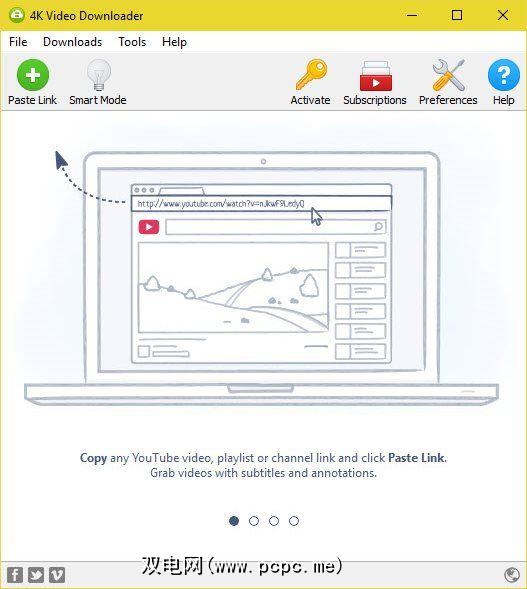 安装4K Video Downloader后,您将看到它的主屏幕: