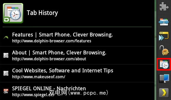 默认情况下,浏览网站时,海豚浏览器会切换到全屏模式。仅通过将其滑动打开,即可临时访问侧面的菜单和顶部的选项卡。当您进入网站中间并想快速切换到另一个标签时,必须一直向上滚动才能查看打开的标签。 Tab Switcher插件解决了这一难题,使在选项卡之间切换变得更加方便。