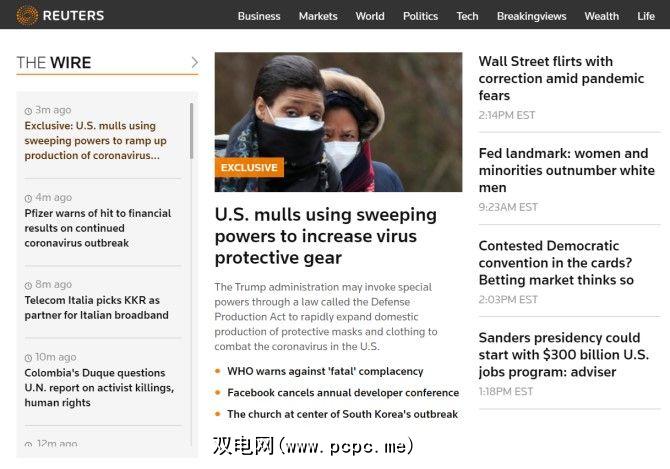 路透社是国际新闻源,重点关注商业和金融新闻。该网站的主页显示了股票市场的当前状态,并且还包含与经济和大公司有关的各种新闻报道。