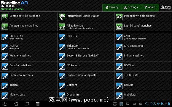 首次启动该应用程序时,您会看到Satellite AR在其应用程序中拥有的所有潜在卫星用于跟踪的数据库。