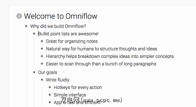清单对于完成工作非常有用,但缩进列表对于编写会议记录或计划项目则更好。 Omniflow是为此目的而设计的Web应用程序。