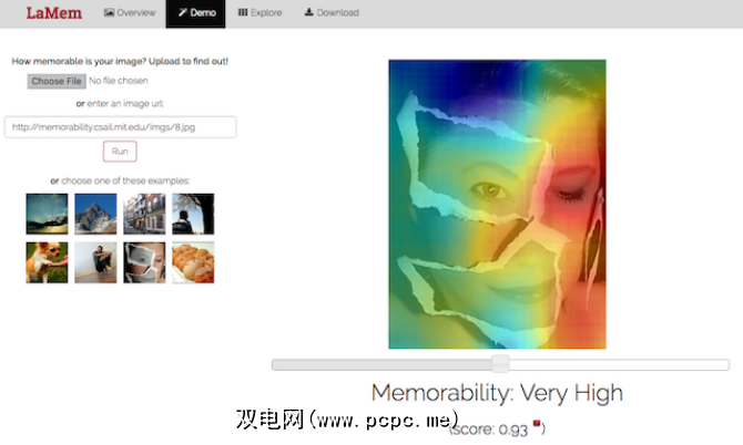 LaMem(或大型图像)易记性)要求您上传图片,花几分钟进行计算,然后吐出分数。单击分数旁边的小问号,以了解两分钟后看到照片的人会记住它的百分比。